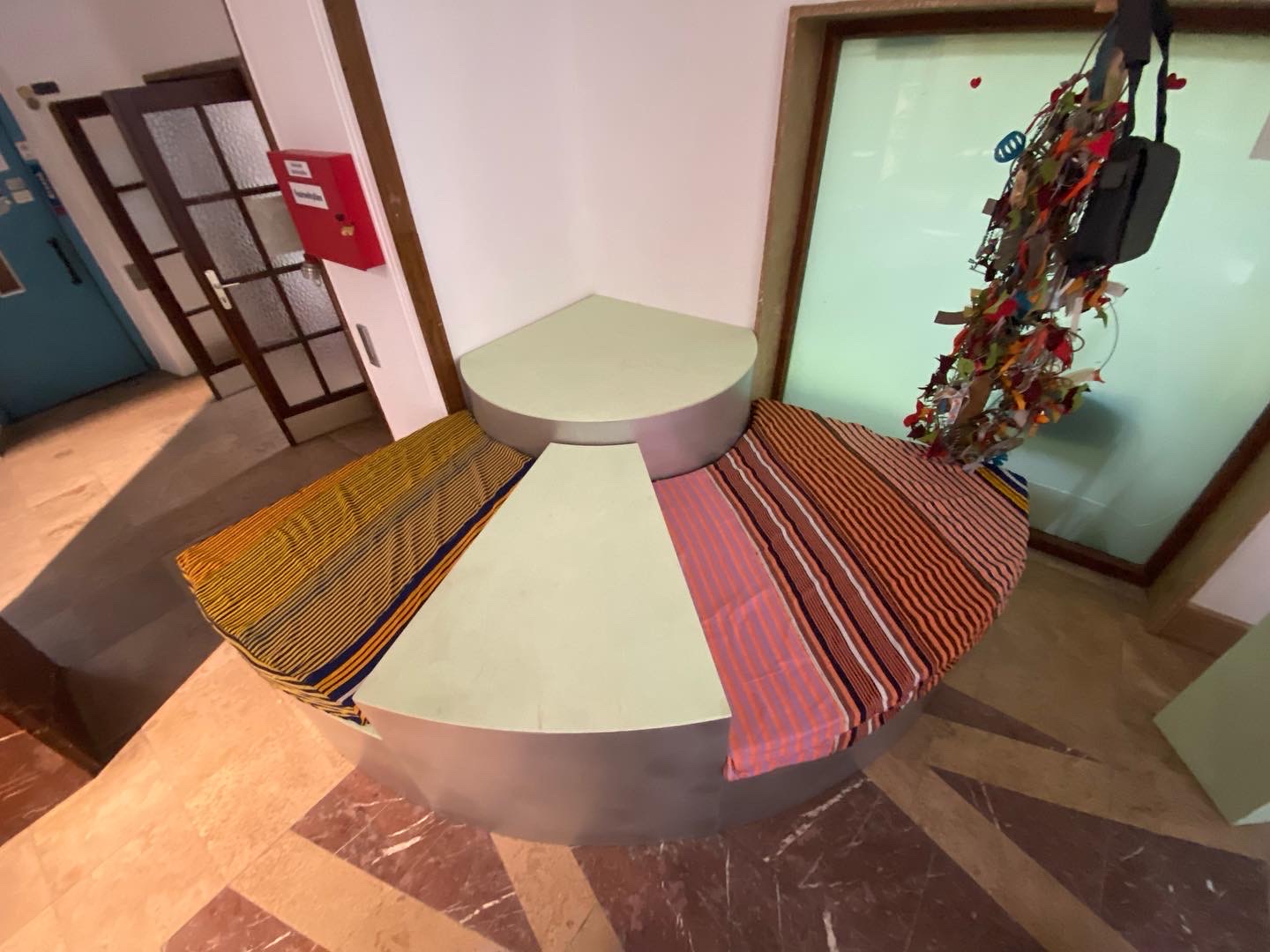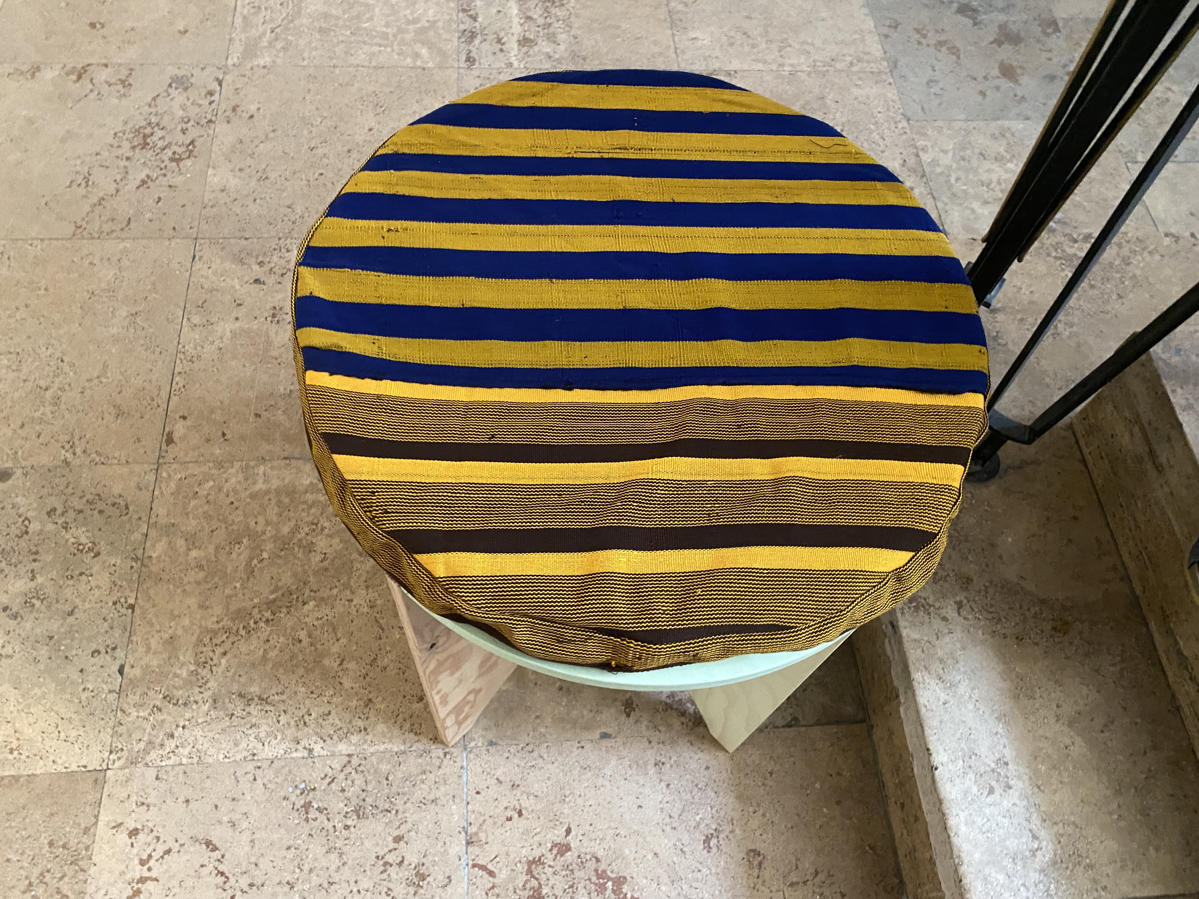 In Zusammenarbeit mit dem Amo-Kollektiv Berlin und Coopdisco beauftragte das IfEE Kpaluhi - ein soziokulturelles Projekt, das mit einer Gruppe von Weberinnen aus dem Dorf Ngarin, einem Vorort von Tamale im Norden Ghanas, zusammenarbeitet - mit der Herstellung verschiedener Formate von Kissenbezügen für den Amo-Salon, die Teil der von Coopdisco entworfenen und gebauten modularen Holz-Infrastruktur sind.